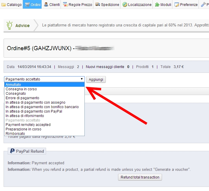 P.s. Ricordo che cancellare male un ordine con tutti i suoi record collegati, può creare spiacevoli situazioni, come utenti che hanno avviato il sito e si sono trovati ordini associati a dati di prova come pagamenti o spedizioni che non avevano cancellato.