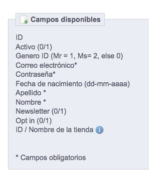 Villagordo Posted July 3, 2013 Share Posted July 3, 2013 (edited) Buenas tardes, tengo una tienda tienda funcionando con la versión 1.4 y ahora tengo en local la misma pero con nuevo diseño y actualizada a la 1.5.4.1 y necesito volcar, por lo menos los clientes, tengo el fichero CSV con los clientes pero cuando quiero importarlos desde Parámetros Avanzados > Importes de CSV salen unos datos que no son correctos o eso creo yo, no concuerdan con los datos, y faltan datos como por ejemplo, la dirección, telefonos, tlf y no se si se van a exportar correctamente. Alguien ha realizado este tipo de importanciones para que me pueda decir que debo hacer? Saludos!! Edited July 9, 2013 by Villagordo (see edit history) Link to comment Share on other sites More sharing options...