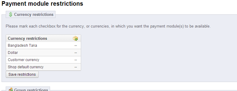 modassir.yousuf Posted July 8, 2013 Share Posted July 8, 2013 (edited) I am having a problem with my Prestashop. Whenever I am trying to check out the payment module is not working please the attached pics for reference. I have read all the forum but didn't get the solution please help. Also all the group are selected Any help will be appreciated Edited July 8, 2013 by modassir.yousuf (see edit history) Link to comment Share on other sites More sharing options...