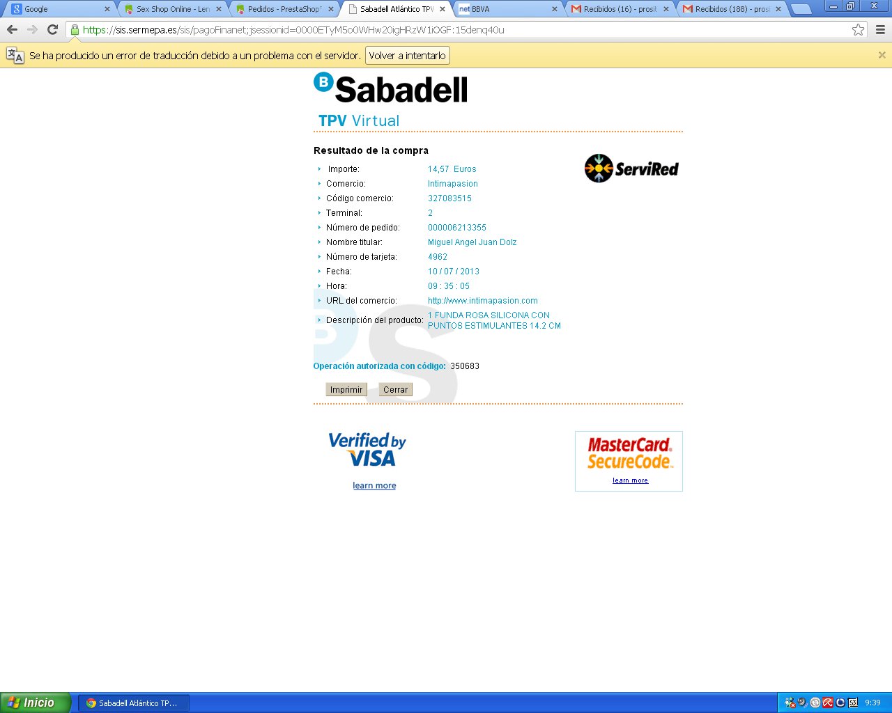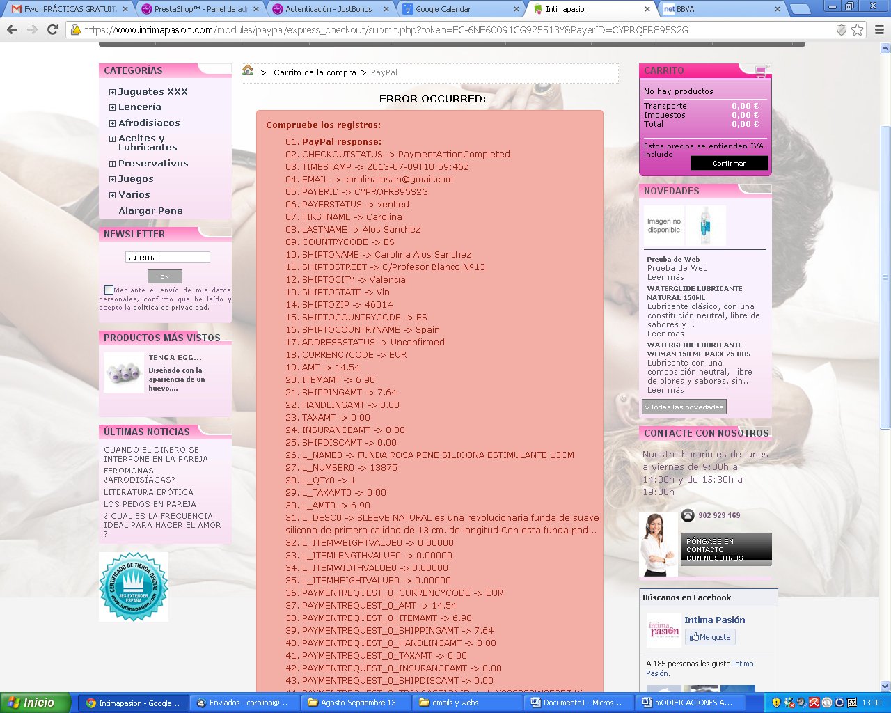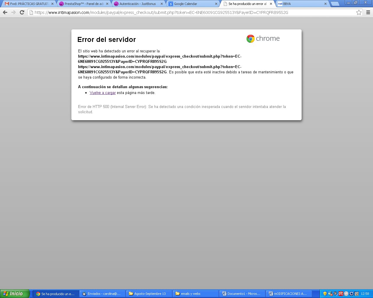 Capturas de pantalla con errores mostrados al hacer el pago con Paypal y servired en ficheros adjuntos.