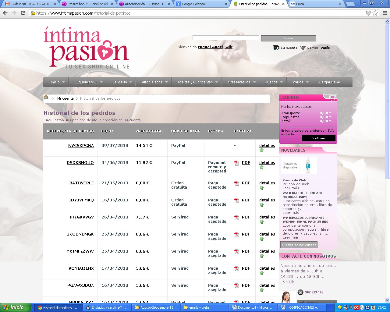 Buenos días, tengo una tienda http://www.intimapasion.com, que rueda en Prestashop 1.5.2.0.