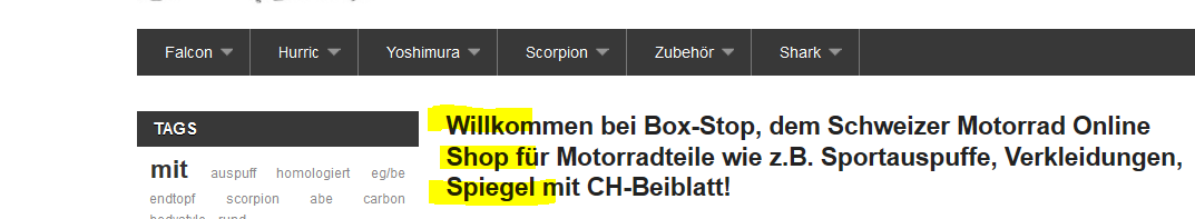 Wo kann man eigentlich den Willkommenstext für den Shop ändern? Dieser Text wird bei mir auch im Suchresultat von Google angezeigt. Hab ein File angehängt damit ihr wisst was ich meine.