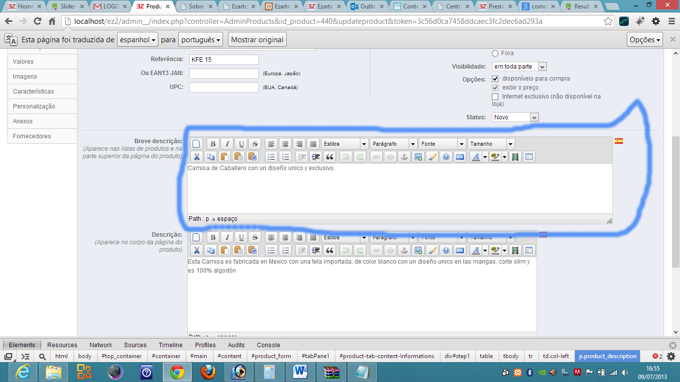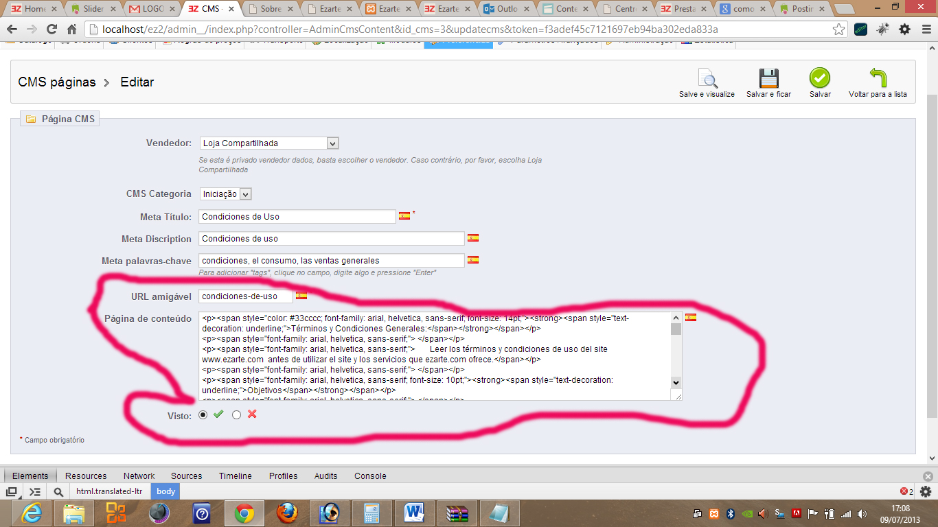 Jeferson Luiz Posted July 10, 2013 Share Posted July 10, 2013 Necesito poner testo editor como este que es de color azul para editar páginas prestashop versión CMS 1.5.4.1, pero no puedo. Contentbox acaba de descargar un módulo o puede enviar allí lo que quiero. Aquí hay 2 pantallas que es una selección en azul es lo que he puesto en la pantalla con una selección que está en rojo. Alguien, por favor! ¿Me pueden ayudar?! Necesito paso a paso la forma de resolver esto! Link to comment Share on other sites More sharing options...