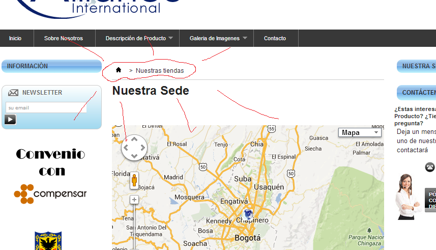 pabloledesma Posted July 11, 2013 Share Posted July 11, 2013 Buenas noches a todos En esta ocasión me encuentro cambiando el texto del menú de navegación de mi sitio web. Quiero reemplazar el texto "Nuestras tiendas" por "Nuestra Sede". http://allianceinternational.com.co/tiendas (imagen adjunta) He modificado el blockstore.tpl de la siguiente manera: <!-- Block stores module --> <div id="stores_block_left" class="block"> <p class="title_block"><a href="{$link->getPageLink('stores')}" title="{l s='Nuestra Sede' mod='blockstore'}">{l s='Nuestra Sede' mod='blockstore'}</a></p> <div class="block_content blockstore"> <p class="store_image"><a href="{$link->getPageLink('stores')}" title="{l s='Nuestra Sede' mod='blockstore'}"><img src="{$module_dir}{$store_img}" alt="{l s='Nuestra Sede' mod='blockstore'}" width="174" height="115" /></a></p> <p> <a href="{$link->getPageLink('stores')}" title="{l s='Nuestra Sede' mod='blockstore'}">» {l s='Descubra nuestra sede' mod='blockstore'}</a> </p> </div> </div> También he cambiado el texto en el archivo de traducciones de la carpeta lang y tampoco. Tengo el presentimiento de que es muy sencillo pero mi inmensa ignorancia no me deja descubrirlo. Porfavor ayudenme. Agradezco de antemano por su valiosa ayuda Link to comment Share on other sites More sharing options...