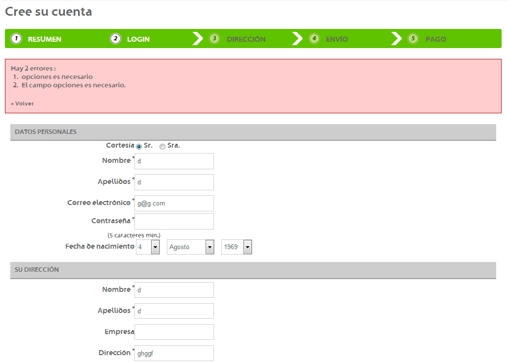 LluisAzm Posted July 11, 2013 Share Posted July 11, 2013 Hola! Al registrarme en la tienda que estoy montando para hacer las pruebas finales (creo que irá bien ver el error en persona: www.zonavap.es), relleno todos los campos y al aceptar me dice que hay dos errores: 1. opciones es necesario 2. El campo opciones es necesario ¿De donde puede venir? Gracias! Link to comment Share on other sites More sharing options...