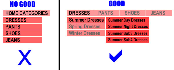 Ozgur34 Posted July 12, 2013 Share Posted July 12, 2013 Hi I want my PrestaShop 1.5.4 site to display its top menu like this: Pls see the attached JPG. Basically I dont want home > categories on top menu but I want each main category items on top menu and under them their own sub categories and their sub categories. How do I achieve that in Admin? Thanx Link to comment Share on other sites More sharing options...