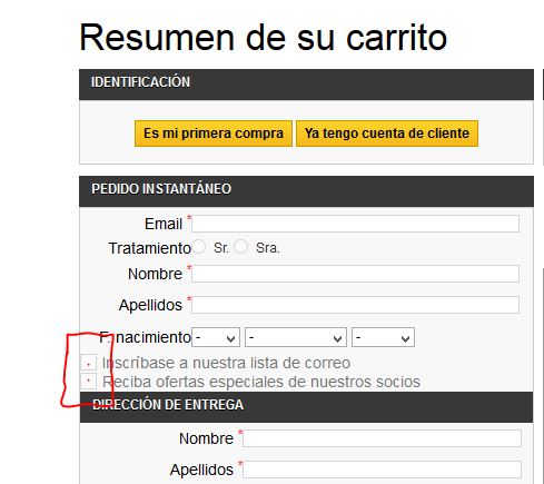 Dimar Posted September 5, 2014 Share Posted September 5, 2014 El modulo funciona al 100% y sin errores, puede haber problemas de maquetacion si el tema que se usa interfiere en algo, pero sabiendo un poco de CSS si existe algún descuadre, se arregla rápido, peor son causados por el tema. Respecto a lo que llamas básico del diseño, la peculiaridad de nuestra compra en un paso es que obtiene le diseño y colores de PrestaShop, si son así los formularios en el CSS del tema, se ven asi, no especificamos nosotros el diseño, ni colores, ni columnas... esto puede ser considerado un pro o un contra, porque si el tema esta bien creado, la compra en un paso queda integrada con los colores, diseño y apariencia del tema, pero si el tema es uno que esta mal construido, puede dar problemas de descuadres, pero nosotros ayudamos a solucionarlo sin coste. No consigo recrear tu captura de pantalla. Saludos Hola. Estoy algo decepcionado, aunque por el precio supongo que no se puede pedir mas. Los formularios son de diseño normal con el themes por defecto, asi que hay que trabajar mucho en css y los datos de provincia y DNI hacen el mismo descuadre incluso en el TEMHES POR DEFECTO. Espero solucionen ese detalle en una proxima version. Saludos. Link to comment Share on other sites More sharing options...