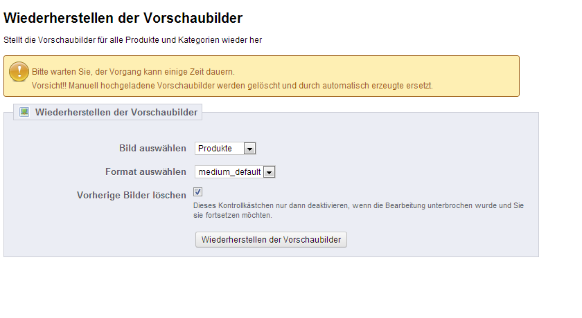 Eudoxia Posted July 14, 2013 Author Share Posted July 14, 2013 hmmm..... ich habe die Wiederherstellung jetzt wirklich sehr oft geklickt - leider keine Veränderung. Ich habe PrestaShop 1.5.4.1 Vom Webspace habe ich leider keine Ahnung - ein Bekannter hat mir die Basics eingerichtet, aber um den Rest muss ich mich selber kümmern. (Bin ja schon stolz überhaupt mal so weit gekommen zu sein) Kann es irgendwas mit dem installierten Theme zu tun haben? Weil die Bilder vorher werden ja alle angezeigt - alle nachher hochgeladenen nicht mehr Ach ja: und unter dem Hauptfoto des Produkts werden zwar die Fragezeichen angezeigt, aber wenn man draufklickt lädt das Bild ganz normal. Link to comment Share on other sites More sharing options...