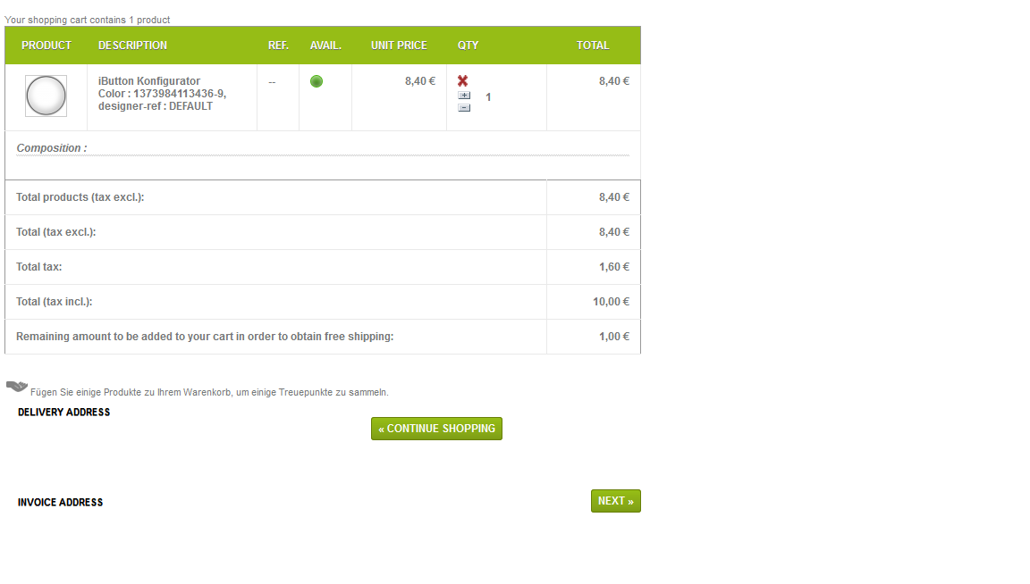 DarkCat Posted July 16, 2013 Author Share Posted July 16, 2013 Ach! Ich habe noch ein 3. Problem vergessen... Wenn ich auf der Warenkorb-Seite bin und die Menge erhöhe, dann erhöht sich zwar der Preis, die Menge setzt sich aber leider auf 0. Lade ich die Seite neu steht sie auf 1. Lade ich sie nicht neu und möchte doch nur 1 (also -), dann verschwindet das Produkt komplett aus meinem Warenkorb. LG DarkCat Link to comment Share on other sites More sharing options...