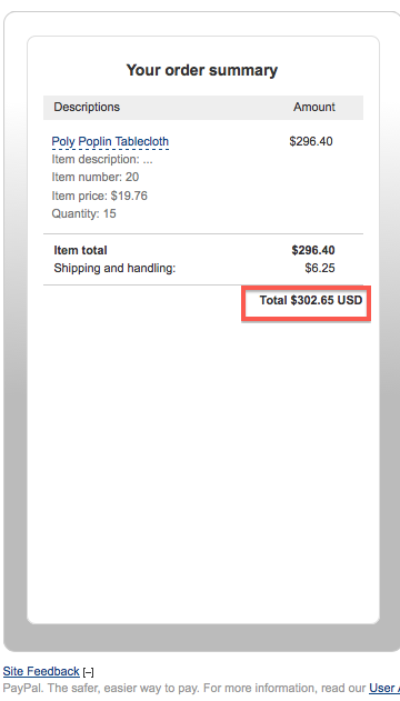 bruce-rez Posted July 17, 2013 Share Posted July 17, 2013 (edited) Prestashop 1.5.4.1 default theme. PayPal Payments Standard PayPal module 3.5.1 When I place an order the Total amount in Shopping-cart summary $302.58 is different than the Total amount in PayPal $302.65. How can we fix this problem? see screen shots. Thank you Edited July 23, 2013 by bruce-rez (see edit history) Link to comment Share on other sites More sharing options...