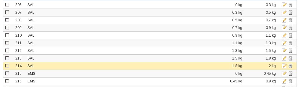 Grauer Posted August 4, 2013 Author Share Posted August 4, 2013 Danke für die Antwort und Entschuldigung für die Späte Rückmeldung. Ich denke wir haben da etwas aneinander vorbei geredet. Ich probiers nochmal zu erklären. Folgendes Beispiel. Ich habe zwei Versandarten. SAL und EMS SAL ist z.B. nur möglich wenn das Paket weniger wie 2kg wiegt und kleiner als 60cm ist. EMS geht immer. Wenn ein Kunde nun etwas bestellt was mehr als 2kg wiegt wird korrekter weise nur EMS bei der Versandauswahl angezeigt. Das Problem ist aber wenn ein Kunde was im Warenkorb hat was nur 1kg wiegt aber gößer wie 60cm ist wird der SAL Versand trotzdem angezeigt. Der Kunde kann den SAL Versand auch anklicken und wenn er den Warenkorb aktualisiert dann bleibt die Auswahl bei SAL. Da dieser Versand aber nicht möglich ist wird bei Versandkosten aber korrekterweise der EMS verrechnet. Somit ist zwar Finanztechnisch alles Klar, aber für den Kunden stellt dies eine ungemeine Verwirrung dar zumal der SAL Versand viel billiger ist. Leider bin ich bis dato noch nicht dahinter gekommen was ich Falsch gemacht habe. Link to comment Share on other sites More sharing options...