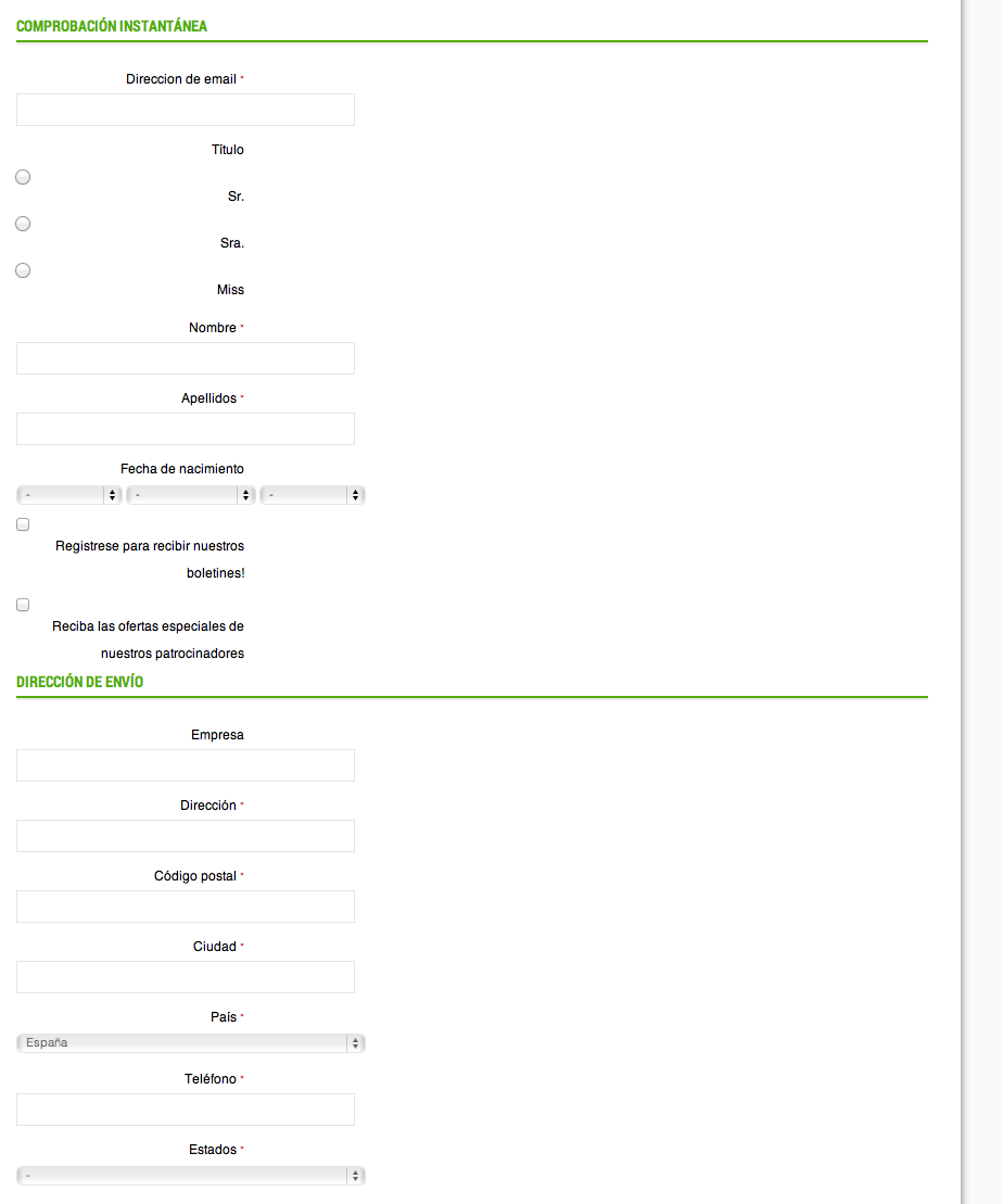nadie Posted July 19, 2013 Share Posted July 19, 2013 Hola a todos adjunto captura por si alguien puede ayudarme, necesito quitar esto del proceso de compra y por mas que busco no se donde esta ni donde responde a estos datos, ni que modulo, alguien me podria aclarar como quitarlo, esto aparece en el segundo paso del proceso de compra, pide todos los datos estos, antes de loguearse o registrarse. os dejo la captura por si algun entendido puede ayudarme. gracias ¿Es posible que tengas activado en la pestaña Preferencias -> Pedidos el pedido express (modo invitado) ? 1 Link to comment Share on other sites More sharing options...