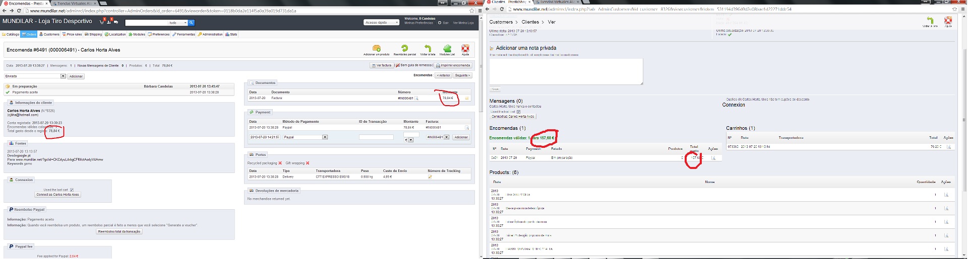 Rogerio Lima Posted July 22, 2013 Share Posted July 22, 2013 (edited) I have experiencing also a very strange situation in prestashop, I have in statistics about 40.000 of sales this month but if I sum every orders I only have 20.000€. If I receive a payment by Paypal, Cash on delivery or the portuguese "Multibanco" I don't know why but prestashop double the value of the order, in the orders history page everything is OK but when I access to a customer account and see the history of his orders, the have twice the value as the real. You can see what I'm talking about in the attached picture. Is someone can help me, please contact me by PM and give me a quote. All the best, Rogerio Edited July 22, 2013 by Rogerio Lima (see edit history) Link to comment Share on other sites More sharing options...