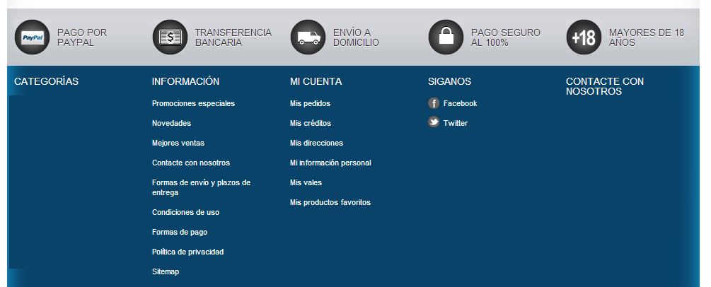 nadie Posted July 24, 2013 Share Posted July 24, 2013 Hola, En este caso necesito saber cómo se ponen a pie de página las redes sociales, e información u otros datos. Os dejo un par de ejemplos. Es algún módulo o algo? Gracias. Como usas Prestashop 1.4, puedes usar por ejemplo este modulo: http://www.prestalov...les/easy-footer (Es gratis) ya lo adaptas tu.. Link to comment Share on other sites More sharing options...