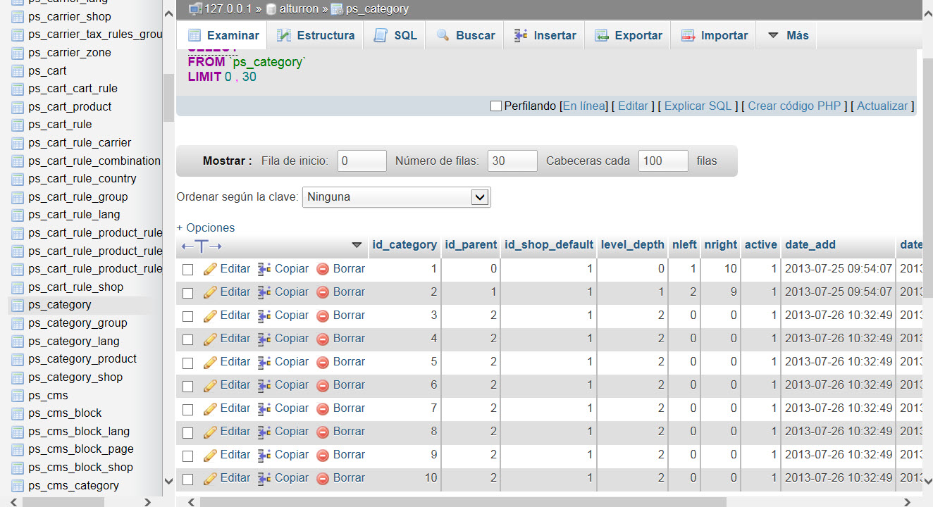wolvelopez Posted July 26, 2013 Share Posted July 26, 2013 Hola compañeros, estoy trabajando en un script en python que recibe un cvs y lo introduce en prestashop. Hace tiempo ya hice uno con una versión de prestashop mas antigua y no tuve muchos problemas. El caso es que ahora lo estoy actualizando para la versión 1.5.4.X y el tema de las categorías me esta machacando. Tengo las categorías dentro de la base de datos tal y como muestro en la imagen adjunta 2, pero no aparecen en el front de prestashop, es mas, no me aparece ni el modulo de categorías y esta instalado y colocado en el front. Haber si alguien me puede arrojar un poco de luz sobre el tema. Muchas gracias de antemano. Link to comment Share on other sites More sharing options...