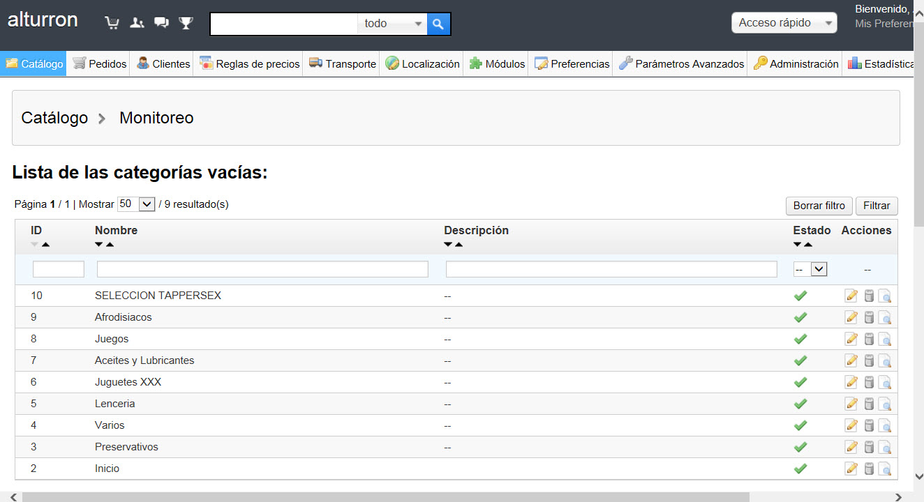 nadie Posted July 26, 2013 Share Posted July 26, 2013 ¿No te aparecen las categorias en el Front-End? ¿O no te aparece solo el bloque de categorias? (Si es solo el bloque de categorias, prueba desinstalar y volver a instalar el modulo en la pestaña modulos -> modulos), prueba tambien limpiar la cache de smarty y la compile con este modulo: http://www.prestasho...s-compile-ps15/ de statictic. Si sigue sin aparecer, prueba habilitar el reporte de errores: http://www.prestasho...-en-prestashop/ Link to comment Share on other sites More sharing options...