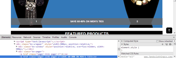 JANDSCLOTHINGCO Posted July 28, 2013 Share Posted July 28, 2013 (edited) Trying to modify the home slider pager to display slide titles instead of the numbers. I know that it is handled by the jquery.bxSlider.min.js file however I can't figure out how to modify it to pick up the slider images title instead of the number. What I am trying to get is below. UPDATE: I found a work around for what I wanted to accomplish and it worked out well Edited August 2, 2013 by JANDSCLOTHINGCO (see edit history) Link to comment Share on other sites More sharing options...