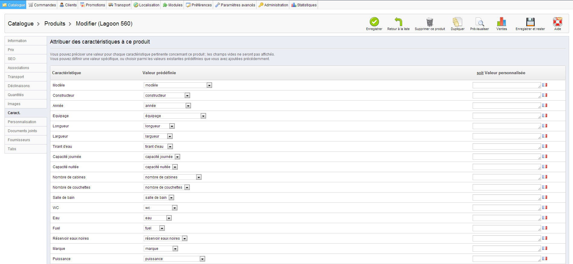 sromain Posted August 16, 2013 Author Share Posted August 16, 2013 Dans la classe FeatureValue.php pour $feature_value->custom = 0; dans le fichier FeatureValue.php Link to comment Share on other sites More sharing options...