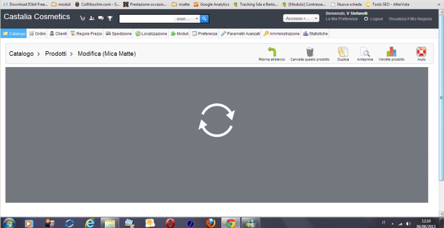 Castalia Posted August 6, 2013 Share Posted August 6, 2013 (edited) Non vengo a capo di questo loop :-( ver. 1.5.4.1 in pratica avevo un 5 prodotti caricati, a titolo di esempio. Ora se vado a modificarli, o ad aggiungere un nuovo prodotto mi si apre la pagina con le freccette che si inseguono in tondo all'infinito , avete presente? quelle del caricamento pagina (la trovate in allegato). Che diavolo può essere? non lo capisco proprio :-( Edited August 6, 2013 by Castalia (see edit history) Link to comment Share on other sites More sharing options...
