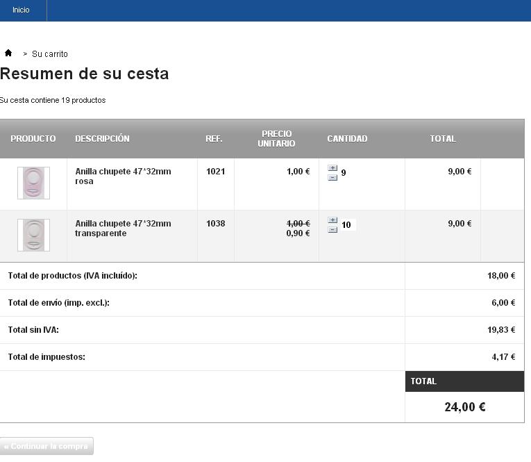 Drunker0 Posted August 6, 2013 Share Posted August 6, 2013 Hola, tengo configurado en algunos productos un descuento por compra a partir de determinadas cantidades. Es decir, comprar un producto te sale por 1€ pero si compras 10, cada uno te sale por 0,90€ esto se refleja en el carrito, en la descripcion del articulo donde aparece el precio por unidad tachado, y debajo el precio al que se queda, pero me gustaria que se viera mas claro. Es decir, que al igual que se ve, total pedido, total sin iva, total iva... quiero que se vea, algo asi, como Descuento total. Un saludo y mil gracias de antemano. Link to comment Share on other sites More sharing options...