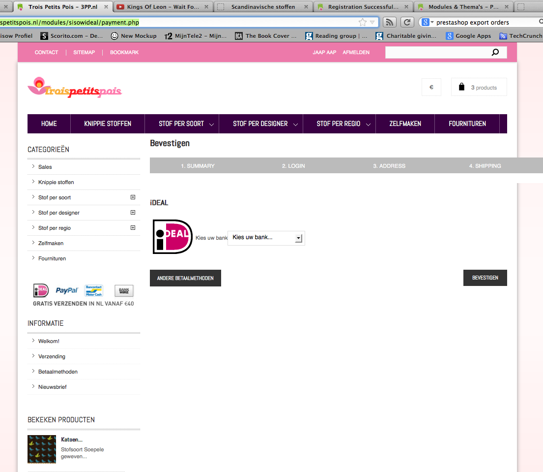 Op de (Sisow) iDeal pagina op onze site staan ineens de categorieen links waardoor de opmaak van de hele pagina verloopt. Alle stappen daarvoor zien je dat niet (zie afbeelding). Weet iemand hoe ik die linkerkolom kan uitzetten op deze pagina?