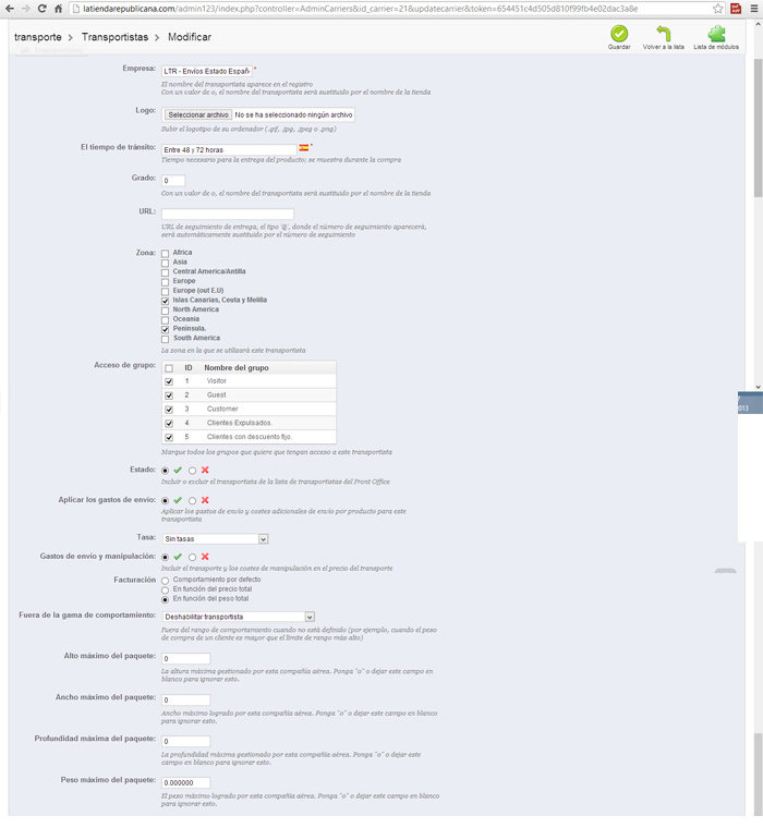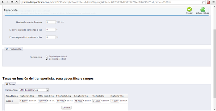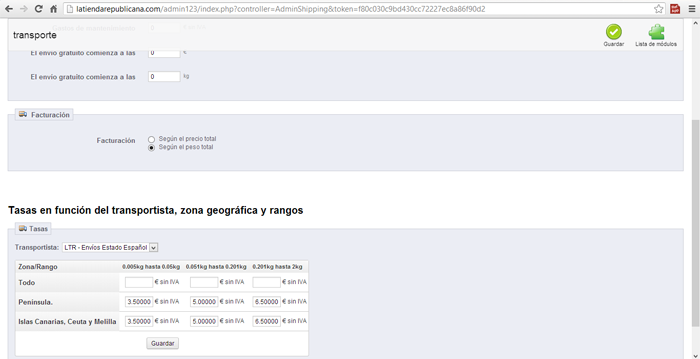 clubisland Posted August 11, 2013 Author Share Posted August 11, 2013 Saludos Victor, Muchísimas gracias por la respuesta. Te adjunto todos los pantallazos, de tal manera que puedas ver las zonas, los rangos y los transportistas que he configurado. Un saludo. Link to comment Share on other sites More sharing options...