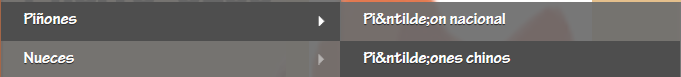 NexusLance Posted August 15, 2013 Author Share Posted August 15, 2013 (edited) No se si estoy haciendo algo mal, pero sigue sin salir la ñ, el codigo tengo: <li> <a href="#"> {l s='Pinones' mod='blocktopmenu'}</a> <ul><li><a href="http://fruitsasac.pusku.com/es/18-pinones"> {l s='Pinon nacional' mod='blocktopmenu'}</a></li> <li><a href="http://fruitsasac.pusku.com/es/19-pinones-chinos"> {l s='Pinones chinos' mod='blocktopmenu'}</a></li></ul> </li> Y despues el de el archivo es.php: $_MODULE['<{blocktopmenu}prestashop>blocktopmenu_ee98d627fe14416e025d645bf8702430'] = 'Piñones'; $_MODULE['<{blocktopmenu}prestashop>blocktopmenu_67867f5f0ac97f3783786280aaa769f8'] = 'Piñon nacional'; $_MODULE['<{blocktopmenu}prestashop>blocktopmenu_86ff7f4f806b6d6f8f0a6d713f4960ee'] = 'Piñones chinos'; Pero sigue saliendo mal... Edited August 15, 2013 by NexusLance (see edit history) Link to comment Share on other sites More sharing options...