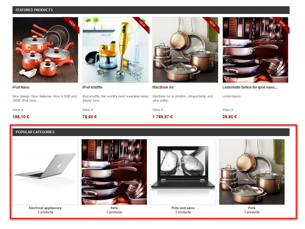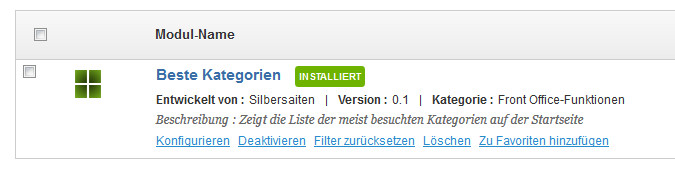 rumata Posted August 15, 2013 Share Posted August 15, 2013 (edited) Hallo, hier ist ein Modul, was wir gerne verschenken möchten. Homepagekategorien stellt eine Anzahl von Kategorien auf der Startseite im Homepage Content. Man kann als Abbildungen entweder das Kategorienbild aktivieren, oder ein Produktbild eines Produktes aus dieser Kategorie. funktioniert mit dem aktuelle Presta 1.5.4.1 Im Moment hier zu sehen, weiter unten auf der Seite. Deutsche Übersetzung ist beigefügt Enjoy Grüße homepagecategories.zip Edited August 15, 2013 by rumata (see edit history) Link to comment Share on other sites More sharing options...