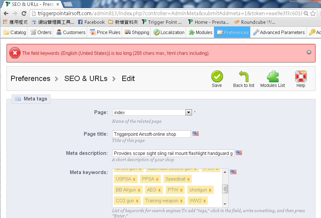 The other meta-keyword I could insert in the SEO - index.