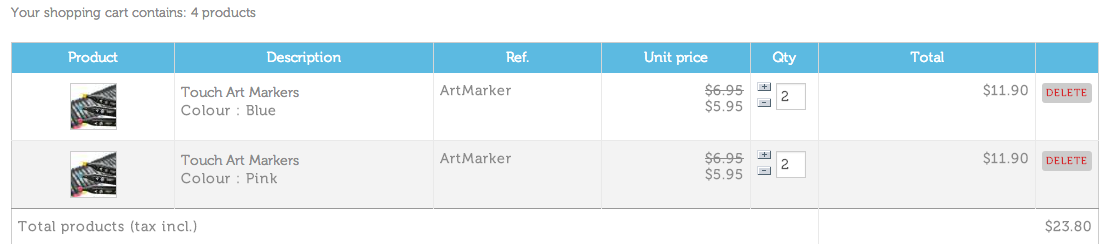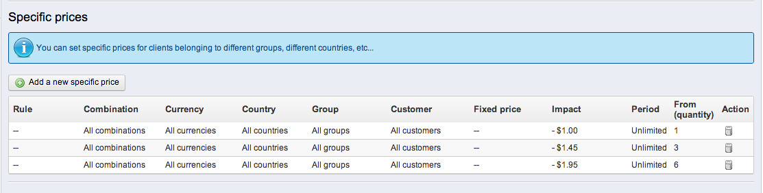 zootalaws Posted August 19, 2013 Share Posted August 19, 2013 This may have been answered somewhere else, but I searched and could not find it: I have a product - marker pen - with 6 colour combinations I want to offer discounts to customers buying 3 or more, 6 or more pens, of any colour. I offer $1 on all products, to highlight that I am discounted from standard retail as well. I have created the six colour combinations, I have changed Preferences > Products > Quantity Discounts based on: Combination. I have added specific price rules in my product to say specific price based on combination - 1, 3, 6. I have checked with standard template, as well as my custom template - same result. Link to comment Share on other sites More sharing options...