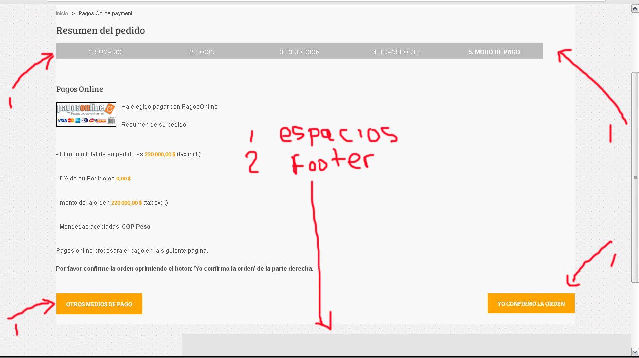 jumcas Posted August 24, 2013 Share Posted August 24, 2013 Buenas tardes, para ver si me pueden solucionar 2 temas 1. El menú se mete detrás de imagen slider en algunos momentos, no se pueden ver bien las subcategorias del menú (menu-prestashop.jpg). Plantilla magary, prestashop 1.5.4.1, nivo slider 1.5 en el index 2. Tengo montada una tienda virtual en prestashop, con los módulos pagosonline: Se instaló el módulo de pagos Pagosonline Se instaló el módulo de Payu Latam Al momento de intentar hacer una compra, con cualquiera de los 2 módulos mencionados se daña la plantilla (footer se desplaza) del prestashop 1.5.x Los diferentes módulos de pago no dañan la plantilla (cheque, tranferencia, etc), La página la tengo en modo local, mientras soluciono estos inconvenientes Muchas gracias por la ayuda al presente. Link to comment Share on other sites More sharing options...