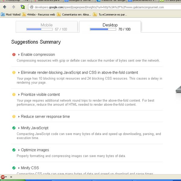 Sergio Ruiz Posted August 25, 2013 Share Posted August 25, 2013 (edited) Veo que usas Prestashop 1.4 por la imagen que adjuntas. Las opciones de CCC, son recomendarlas el activarlas menos la opción que dice: Compresión maxima del codigo html (peligroso) Referente a "gzip" ¿Has ido a la pestaña Herramientas -> Generadores y has señalado la casilla Optimización ? No se te va a romper nada, es decir, si algo no funciona, puedes volver atras desactivando la opción que habias activado. Edited August 25, 2013 by Sergio Ruiz (see edit history) Link to comment Share on other sites More sharing options...