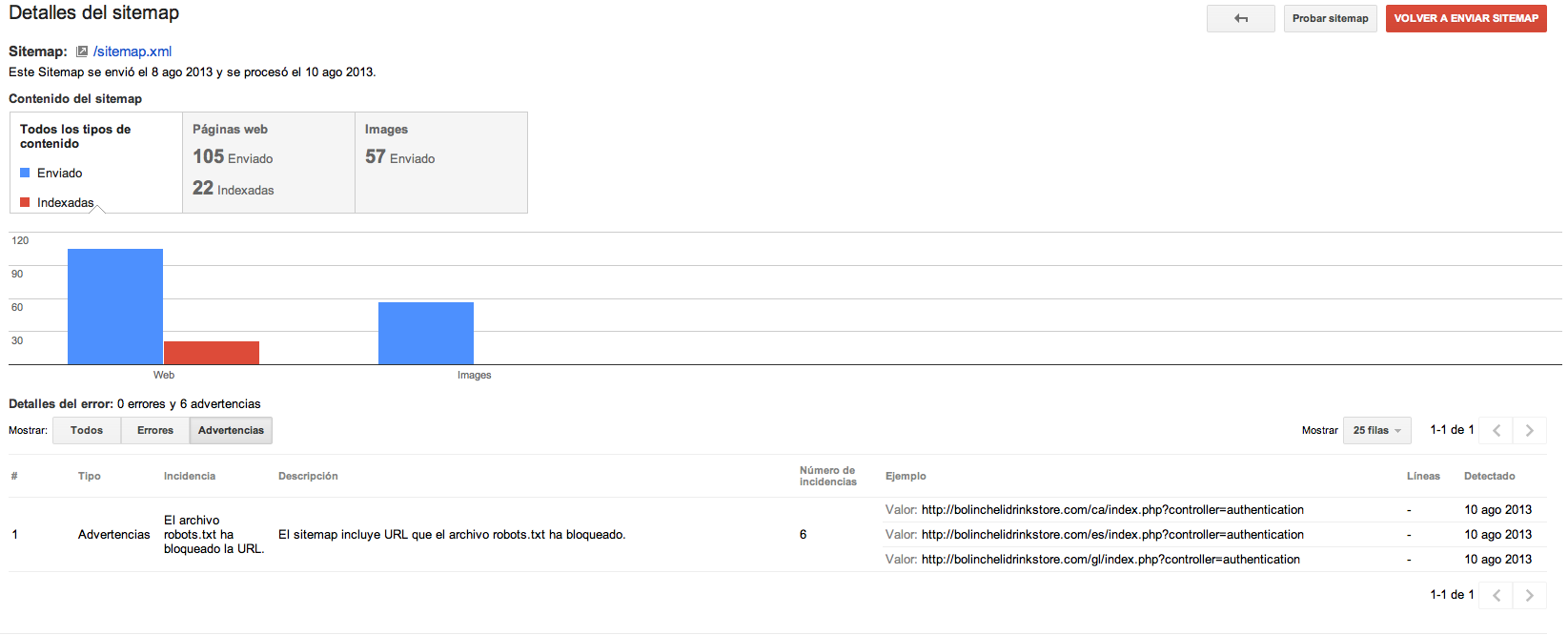 bolincheli Posted August 26, 2013 Share Posted August 26, 2013 Versión de PrestaShop: 1.5.3.1 Hola, necesito ayuda, no sé que ha pasado pero el módulo del sitemap, es como si se hubiese desconfigurado porque el primer sitemap que me generó era en un sólo idioma, a la semana intenté generar otro y ya me salia una pantalla diferente con un index y tres idiomas más ( catalán y gallego ), entonces estoy metiendo ese index y me salen unos errores raros (adjunto capturas de pantalla). Antes salia /sitemap.xml, despues el 1_index_sitemap.xml. Alguien sabe por qué? Además adjunto captura de pantalla del modulo generador porque antes no salia nada de lo que ahora veréis en la captura. :)Gracias de antemano. Link to comment Share on other sites More sharing options...