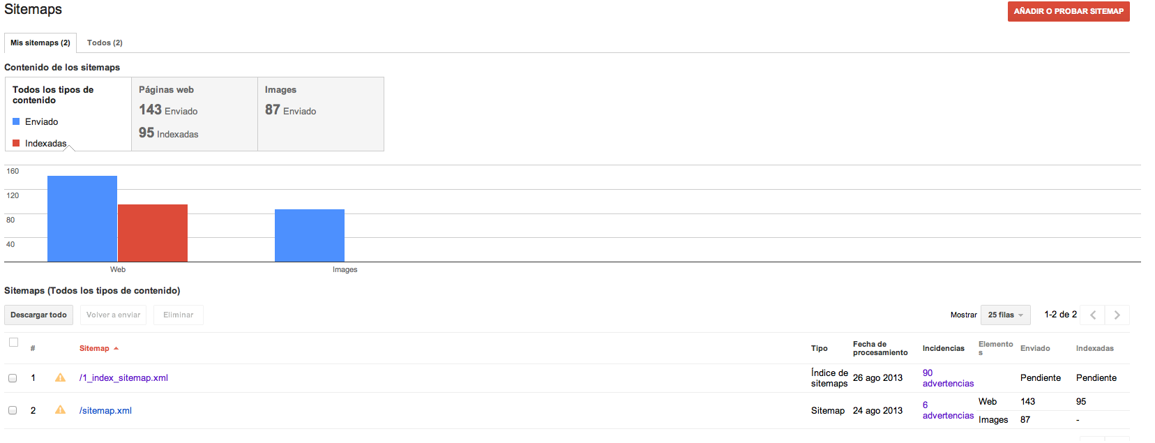 bolincheli Posted August 26, 2013 Author Share Posted August 26, 2013 Nadie, ante todo, muchas gracias por contestar tan pronto. Vale, me ha quedado eso claro, entonces, en la webmaster que salen el anterior sitemap y después ya este último ( el que lleva el index ), puedo eliminar el otro? ¿ Por que dice que tengo 90 incidencias ? Lo pone en la captura de pantalla. Link to comment Share on other sites More sharing options...