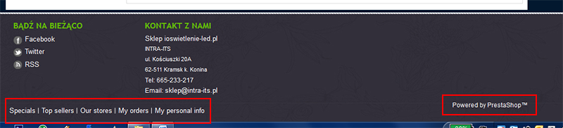 "Powered by PrestaShop" i zastąpić ją Copyrightami swojej marki.
