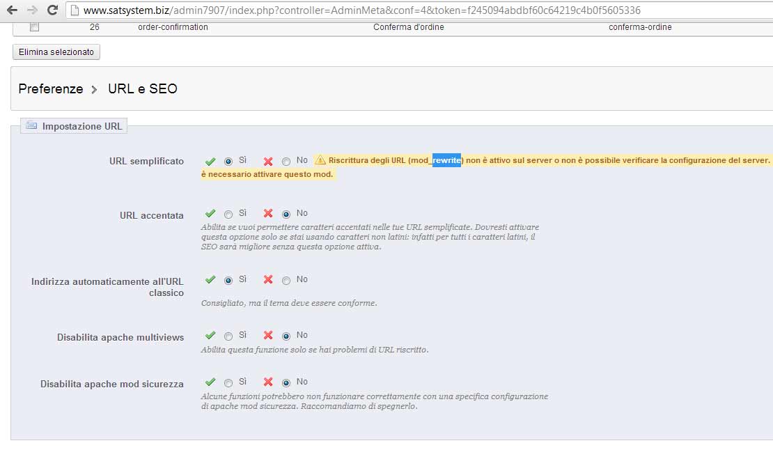giannett Posted August 30, 2013 Share Posted August 30, 2013 Salve a tutti, ho un problema con URL rewrite, come da foto allegata. Ho provveduto a spuntare URL semplificato, ma non vuole funzionare, generando delle pagine con questo indirizzo: http://www.satsystem.biz/home/9-prova.html Qualcuno sa dirmi come mai? Grazie in anticipo e buon lavoro. G. Link to comment Share on other sites More sharing options...