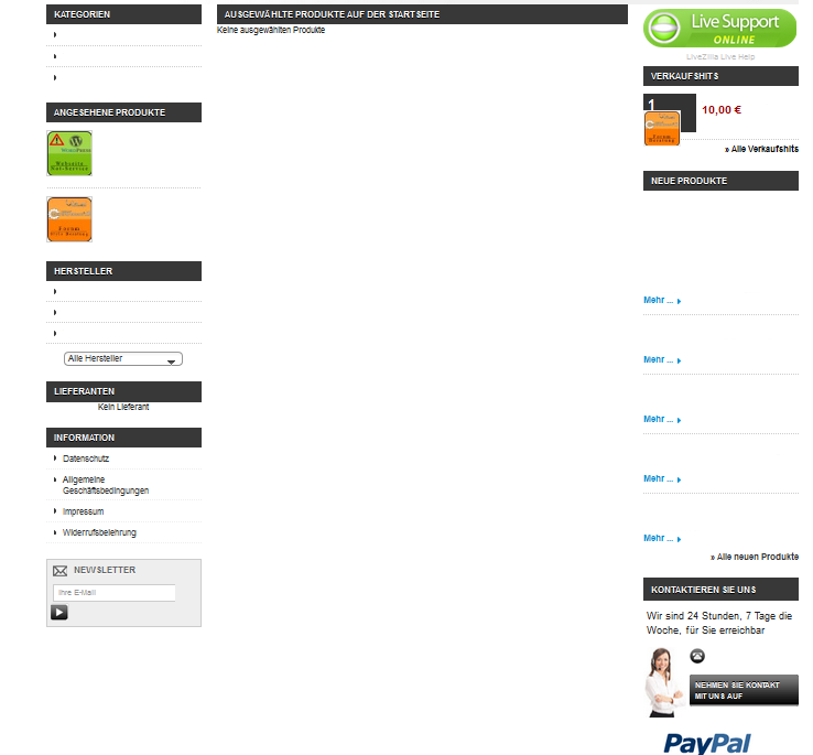 Darüber hinaus scheint es noch ein Problem mit den Bildern zu geben. Da ist an vielen Stellen Leere, wo eigentlich Bilder sein sollten. Die "neuen Produkte" zum Beispiel, da werden Standartmässig wenigstens die ersten zwei mit Bild angezeigt.