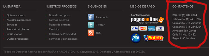 Ivaneare Posted September 3, 2013 Author Share Posted September 3, 2013 (edited) Hola buena noches desde Colombia, Lause te agrdezco la ayuda, pero todo lo que se describe en el link ya lo hice anteriormente y logre modificar algunas cosas, lo que necesito modificar en este momento es que el bloque por defecto trae las siguiente líneas: - Dirección - Teléfono - Email Y yo quiero que salga tal cual está en la imagen que adjunté, osea con los siguientes datos: - PBX: 57 (1) 282 2824- Fax: Telefax: 57 (1) 243 3766- Celular: 57 315 2545191- Celular: 57 315 2545204- Almacen San Carlos- Calle 11 No. 12 - 32- Bogotá - Colombia Agradezco de antemano los que me puedan colaborar. Atentamente, Iván Eduardo Arenas Edited September 3, 2013 by Ivaneare (see edit history) Link to comment Share on other sites More sharing options...