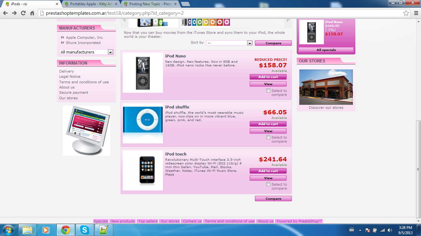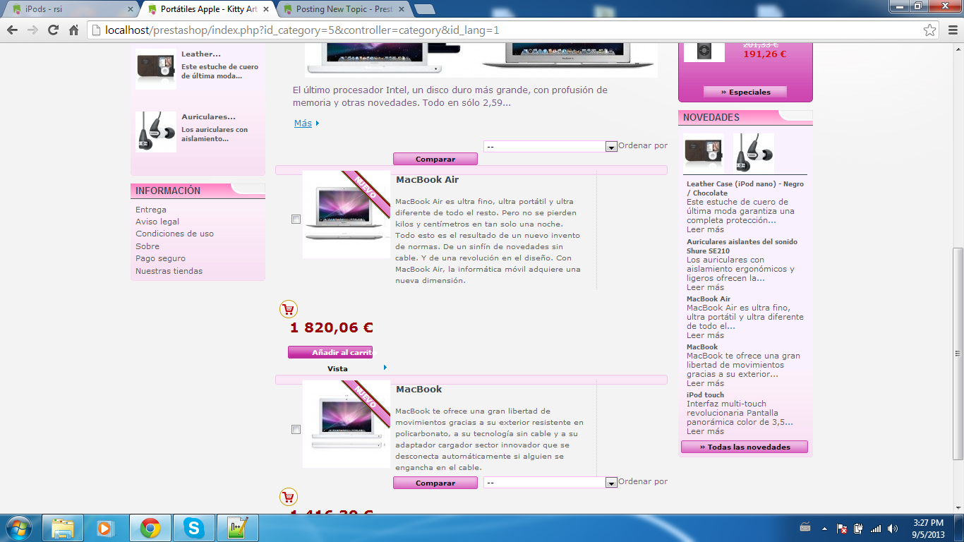 erick1987v Posted September 5, 2013 Share Posted September 5, 2013 (edited) Buenas tardes aqui vengo de nuevo a solicitar su ayuda. El problema que se me presenta ahora es que las categorias se me muestras descuadradas, cosas montandas una encima de otras, he revisado el codigo a travez de la herramienta de desarrolladores del crhome e ido arreglando lo que he podido, pero se me presento el problema de que no encuentro el codigo que genera este display para ver si puedo arreglarlo. estoy usando el prestashop 1.5.4 y el theme rosegirl. les dejo una imagen de como se ve deformada la web y como deberia verse otra cosa que me extraña y que no se si es normal o no, porque si agrego un tema y que tiene todos sus respectivos archivos no se ve exactamente igual al live demo? no deberia tener problemas, y solo debia revisar codigos o Css si quisiera hacerle modificaciones al tema original. como siempre doy mis gracias de antemano espero q me ayudan Edited September 9, 2013 by erick1987v (see edit history) Link to comment Share on other sites More sharing options...