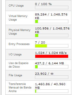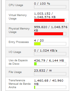 Sergio Ruiz Posted September 9, 2013 Share Posted September 9, 2013 (edited) Lo que te aparece en rojo en la imagen que adjuntas, segun indica parece que es la memoria virtual y la memoria fisica, como si estuvieras a punto de hacer "ploom", yo revisaria el log de errores de tu hosting (en tu hosting puedes verlo) y ver que te esta causuando eso.. Si no tenemos mas información es dificil decirte algo. Edited September 9, 2013 by Sergio Ruiz (see edit history) Link to comment Share on other sites More sharing options...