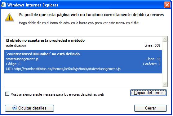 En la barra inferior del navegador aparece un mensaje de error: " listo pero con errores en pagina"