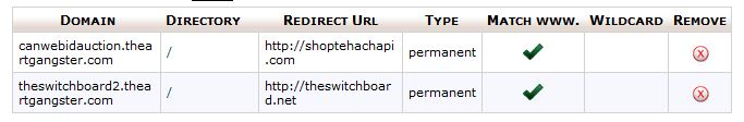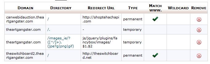 In the second image of my redirection colomns in the cPanel, PrestaShop created the middle 2 colomns. The top and bottom were set up by me. theartgangster.com is my 'main' domain with the others as addon domains. If I enable Friendly URLs, Presta Shop will create tons of those entries in the redirection colomns.
