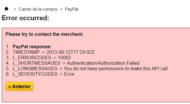 azahara Posted September 12, 2013 Share Posted September 12, 2013 (edited) Me ha llegado al correo un mensaje que indica que un cliente ha tenido un problema Luego yo con una cuenta que tengo registrada para hacer pruebas con pedidos y eso me sale lo siguiente cuando hago un pedido en mi tienda y le doy a la opcion de paypal:(con anterioridad no me salia este problema, ha sido de pronto no se si a raiz de una migracion que me han hecho de un servidor a otro la misma empresa) he configurado las api nuevamente unas cuantas veces y me indica lo mismo, he desinstalado el modulo y vuelto a instalar y aparece el mismo problema, lo he reiniciao el modulo paypal y lo mismo. Se ha agotado el tiempo de espera de la sesión de PayPal. Pagos seguros Como parecía que había hecho una pausa en su actividad en PayPal, hemos cerrado la sesión para proteger su cuenta. Cualquier información no guardada que haya introducido o transacción incompleta que haya comenzado se ha eliminado. Si ha llegado a esta página desde otro sitio web, vuelva a ese sitio (no utilice el botón Atrás del navegador) e inténtelo de nuevo. Si ha llegado del sitio web de PayPal, introduzca su información de inicio de sesión de PayPal. Compruebe también si están habilitadas las cookies en su navegador. EDITO para indicar que tengo PrestaShop™ 1.5.3.1 y la version de paypal es 3.5.8 creo que actualice el modulo ponia actualizar y actualice.... a ver si alguien puede arrojarme un poco de luz al respecto por favor. He desinstalado el modulo de paypal y he instalado el 3.5.9 este http://addons.prestashop.com/es/pagos-prestashop-modulos/1748-paypal.html y el problema persiste Gracias. Edited September 12, 2013 by azahara (see edit history) Link to comment Share on other sites More sharing options...