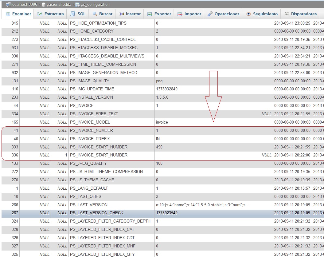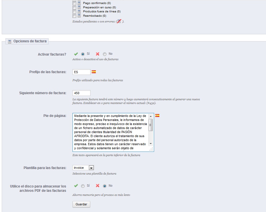 LieBM Posted September 12, 2013 Share Posted September 12, 2013 Buenas a todos, de nuevo reporto otro posible BUG que tengo. Resulta que cuando voy al BO en la pestaña PEDIDOS / FACTURAS, y selecciono un número por donde quiero que empiece la factura....entonces genero un pedido y aparece sin problemas en la factura el nuevo número que he elegido... por ejemplo Nº450 Sin embargo si quiero volver a hacer esa misma operación de volver a elegir un número por donde quiero que continúe la facturación...por ejemplo ahora que continue por el 500...cuando genero otro pedido, la factura de este continúa por el Nº451, y no por el nuevo número que he elegido. En resumen, solo puedo realizar el cambio una vez...ya que las siguientes veces ya no funciona. He mirado en las tablas de configuración del PS, concretamente en la tabla ps_configuration, se generan dos valores correspondientes a los números de factura que elegimos para que continúen, y si borro estos dos valores, me vuelve a funcionar sin problemas y luego vuelve a fallar. Creo que el error está en la orden de escritura de esas tablas que desde el BO no se está haciendo correctamente. Adjunto imágenes. Espero aportaciones sobre esto....Saludos a todos!! Link to comment Share on other sites More sharing options...