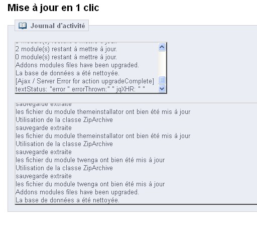 numismativy Posted September 13, 2013 Share Posted September 13, 2013 (edited) Bonjour, j'ai utiliser le modile upgrade en 1 clic, j'ai bien mis le site en mode maintenance, j'ai désactivé le cache, j'ai fais ma sauvegarde de base manuellement, et j'ai lancé le module de maj... tout c'est bien passé jusqu"a : " La basse de données à été nettoyée. [Ajax / Server Error for action upgradeComplete] textStatus: "error" errorThrown:"" jqXHR:"" " et depuis rien ne fonctionne, quand je vias sur ma boutique je vois le message : " Parse error: syntax error, unexpected T_SL in /htdocs/boutique/modules/paypal/paypal.php on line 76 " Que faire pour débloqué ma boutique? merci. Edited September 15, 2013 by numismativy (see edit history) Link to comment Share on other sites More sharing options...