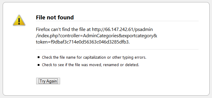 RLMemorabilia Posted September 15, 2013 Author Share Posted September 15, 2013 Sorry about that ... I removed the http text and web address (IP) ... So the message is: psadmin/index.php?controller=AdminCategories&exportcategory&token=f9dbaf3c714e0d56363c046d3285dfb3 Also including a screen shot of the message: Link to comment Share on other sites More sharing options...