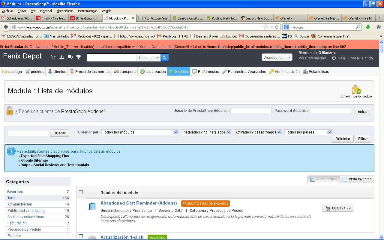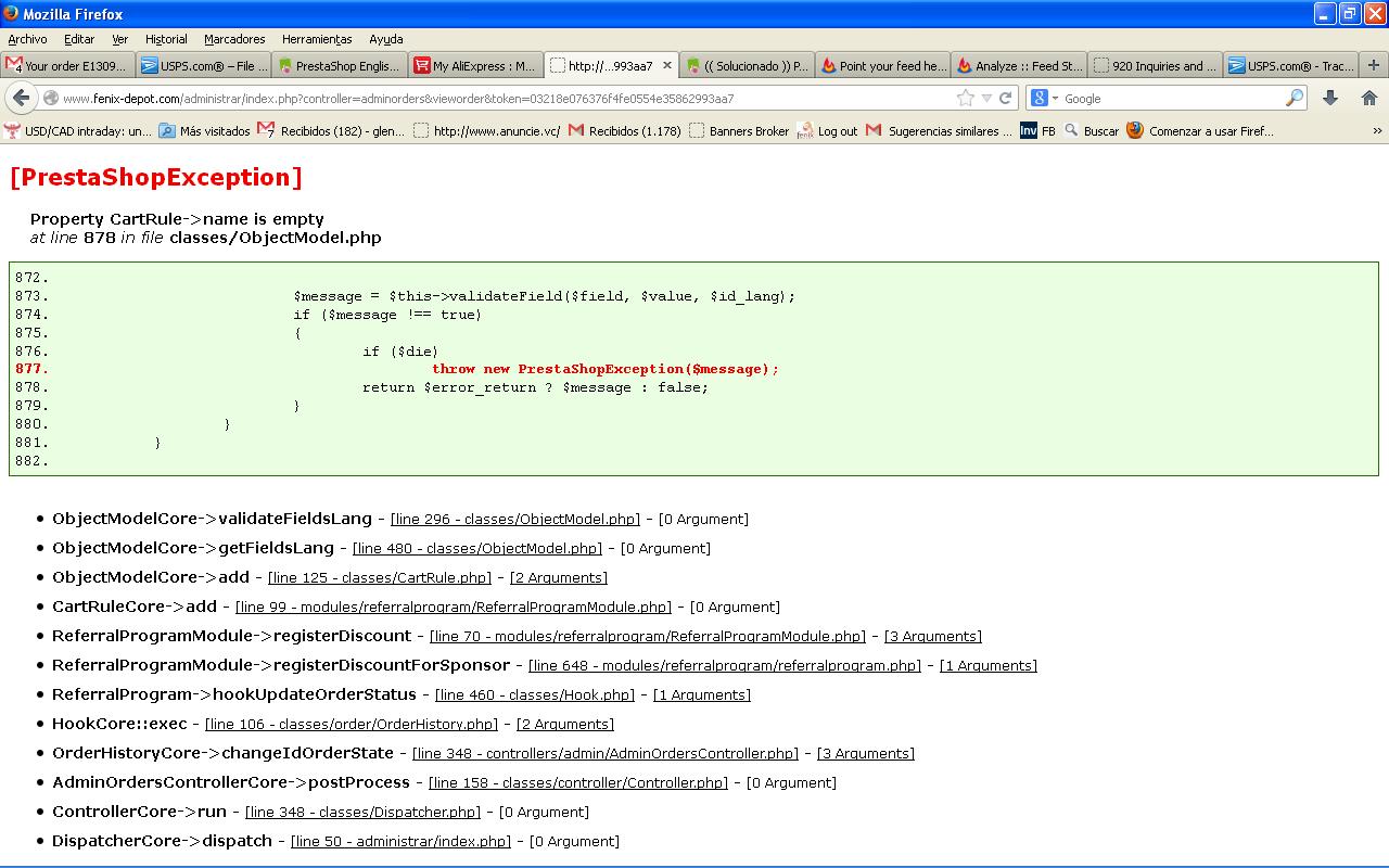 Gmariano Posted September 27, 2013 Author Share Posted September 27, 2013 Hola! Gracias por toda su colaboracion en este foro. Por favor una ayudadita con este error, no me deja cambiar el estado de la factura cuando el cliente me paga con transferencia y tengo que hacerlo manual estoy con el prestashop 1.5.5.0 y el tema por defecto Link to comment Share on other sites More sharing options...