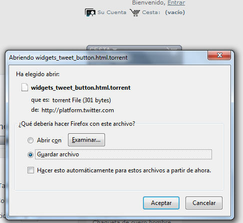a1b2 Posted September 22, 2013 Share Posted September 22, 2013 Hola Me han hackeado. Al dar click a un producto desde casi todos lo modulos (producto nuevo, lo mas comprado ...) me sale ventana con: Abriendo widgets_tweet_button.html.torrent Ha elegido abrir widgets_tweet_button.html.torrent Abrir Guardar.... Agjunto la imagen. ¿Como quitarlo? Gracias Link to comment Share on other sites More sharing options...