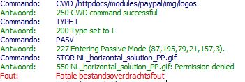 Gamemunchies Posted September 23, 2013 Author Share Posted September 23, 2013 Sadly I tried that... It doesn't work.. I'm trying to overwrite but uploading new files to the FTP also result in errors. error when trying to change chmod: Status: Rechten verzetten van '/httpdocs/modules/paypal/paypal.php' naar '777' Commando: SITE CHMOD 777 paypal.php Antwoord: 550 CHMOD 777 paypal.php: Operation not permitted error when trying to upload a new file to the ftp: Status: Server ondersteunt alleen ASCII tekens. Status: Verbonden Status: Upload starten van C:\Users\Smucked\Desktop\paypala.php Commando: CWD /httpdocs/modules/paypal Antwoord: 250 CWD command successful Commando: TYPE A Antwoord: 200 Type set to A Commando: PASV Antwoord: 227 Entering Passive Mode (87,195,79,21,216,111). Commando: STOR paypala.php Antwoord: 550 paypala.php: Permission denied Fout: Fatale bestandsoverdrachtsfout error when trying to overwrite a file to the ftp: Status: Upload starten van C:\Users\Smucked\Desktop\paypal.php Commando: PASV Antwoord: 227 Entering Passive Mode (87,195,79,21,205,117). Commando: STOR paypal.php Antwoord: 550 paypal.php: Permission denied Fout: Fatale bestandsoverdrachtsfout The paypal module is just an example. There are many more files that are giving the exact same errors... Link to comment Share on other sites More sharing options...