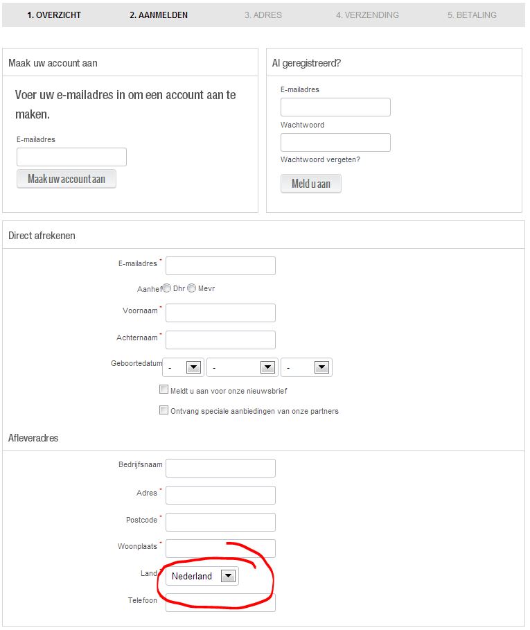 Bedoel je dat de taal uit zichzelf veranderd, op het moment dat je naar de one page checkout gaat? Als je tijdens het producten kiezen het land op België zet, veranderd deze dan naar Nederland op het moment van naar one-page-checkout gaan?